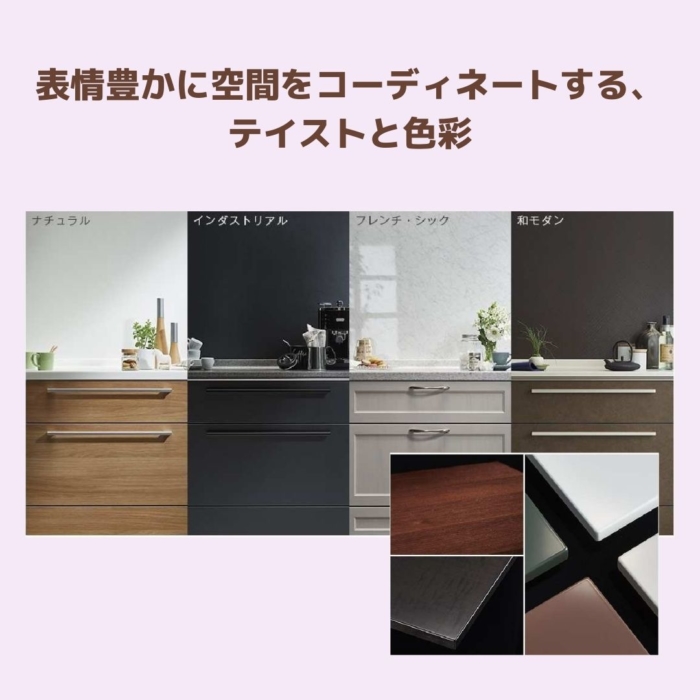 トクラスのキッチン「Berry」のおすすめポイントは何といっても、その豊富なカラーバリエーションです。日本の伝統色114色の鏡面塗装扉「シャインカラー」や、木目のぬくもりが味わい深い天然木の塗装扉など、機械には真似できない熟練技術者の技で、キッチンに適する塗装品質を追求しています。キッチンの扉はもちろん、ワークトップをはじめキッチンパネルまで、カラーや質感を組み合わせることで、こだわりスタイルでのコーディネートを実現できます!