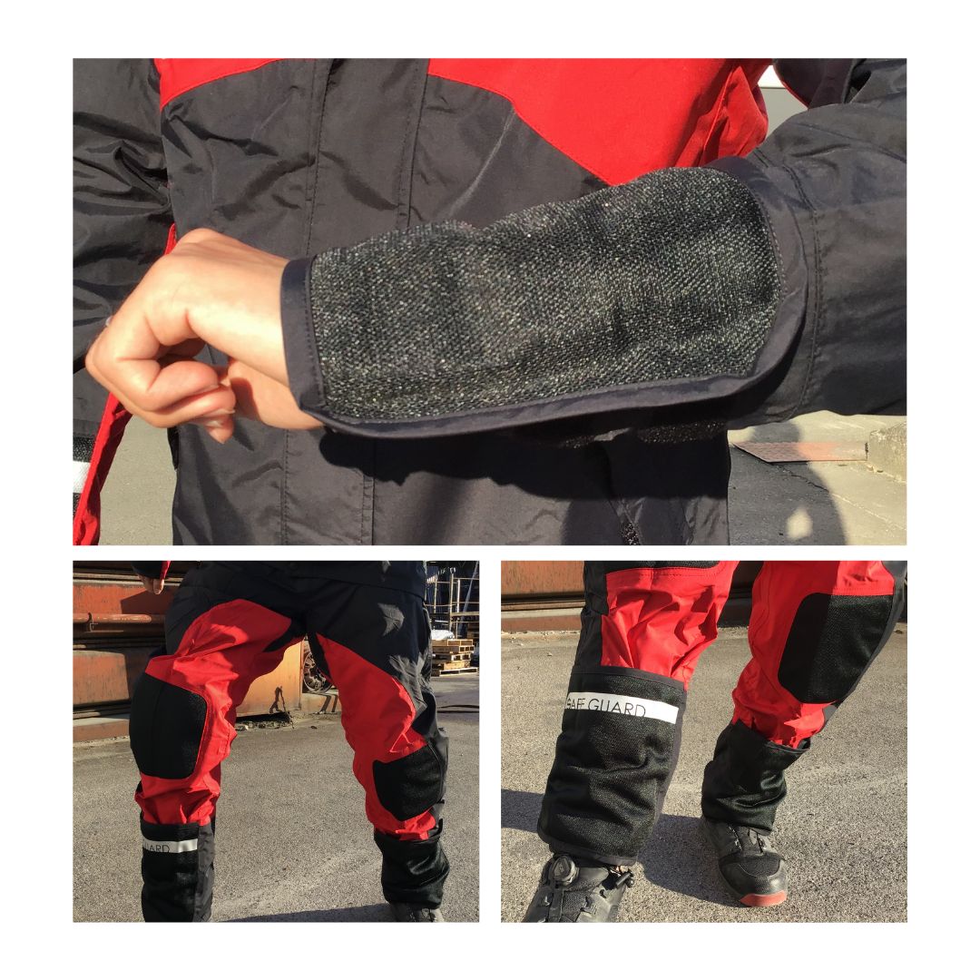 さらに、クッション素材と耐摩耗ガードを採用したことで、ハーネスや腰装備などによるの体へのストレスが軽減されています。