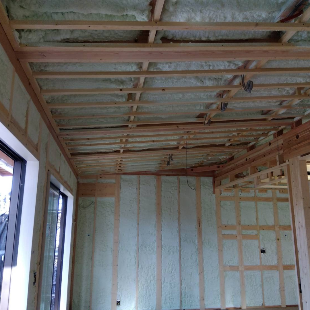 先日、発泡ウレタンの吹き付け作業が完了しました!