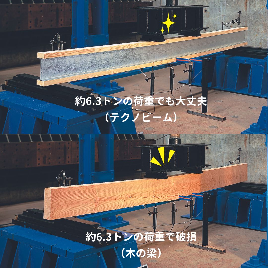 木に鉄を組み合わせた強い梁「テクノビーム」でたわみをおさえます。