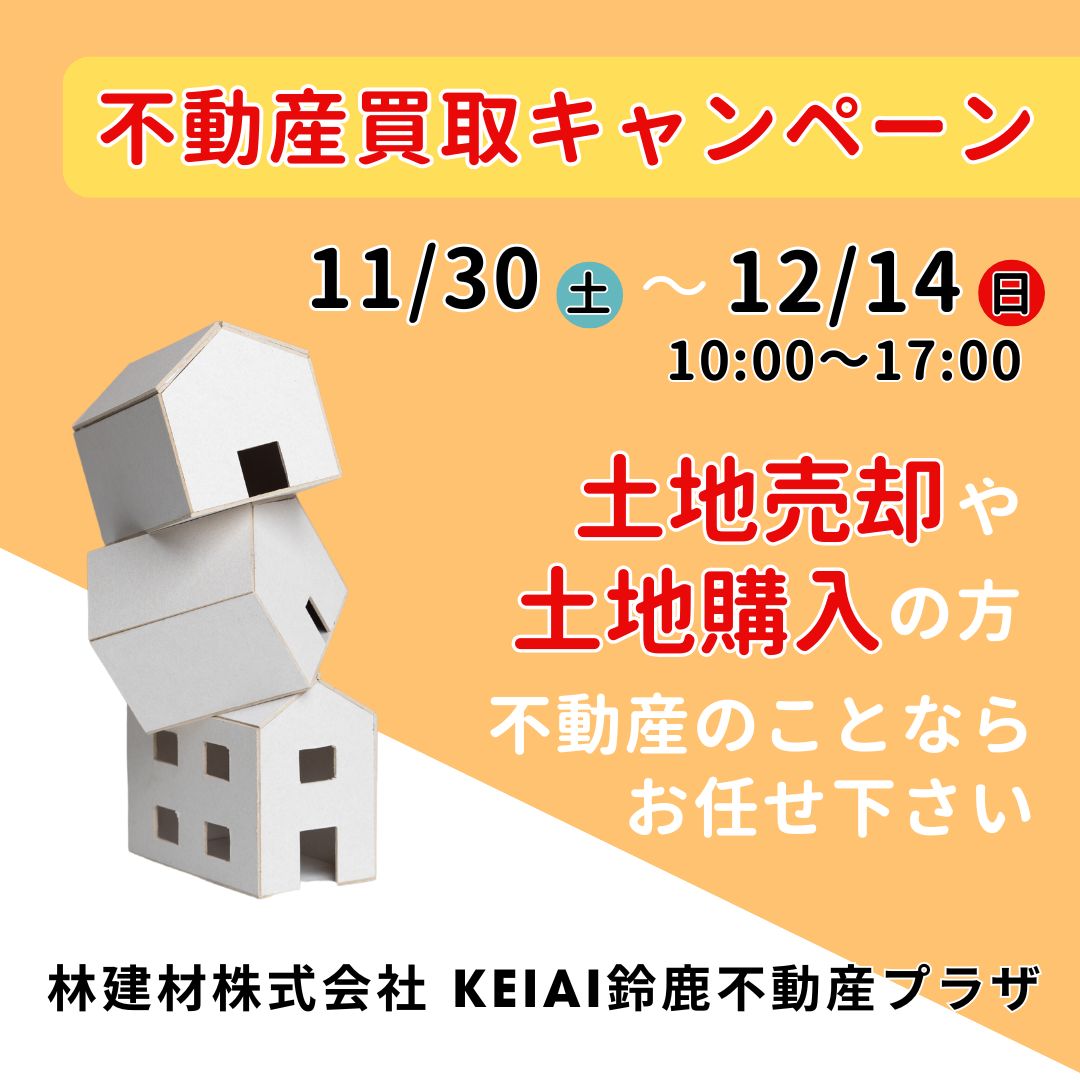 【不動産売却キャンペーン】 期間:11/30(土)~12/14(土) 会場:林建材本社1階 クレアプラスショールーム内