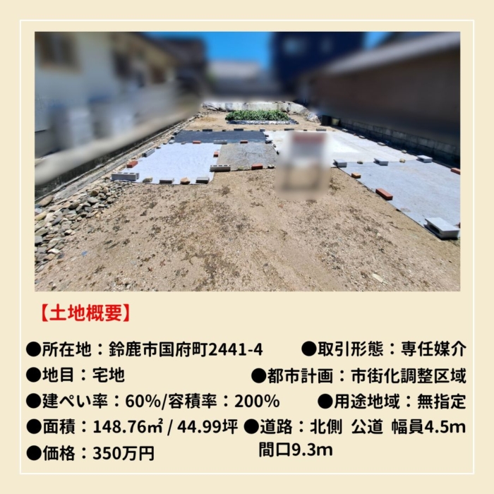 【KEIAI鈴鹿不動産プラザ】鈴鹿市国府町 住宅用地 販売中です