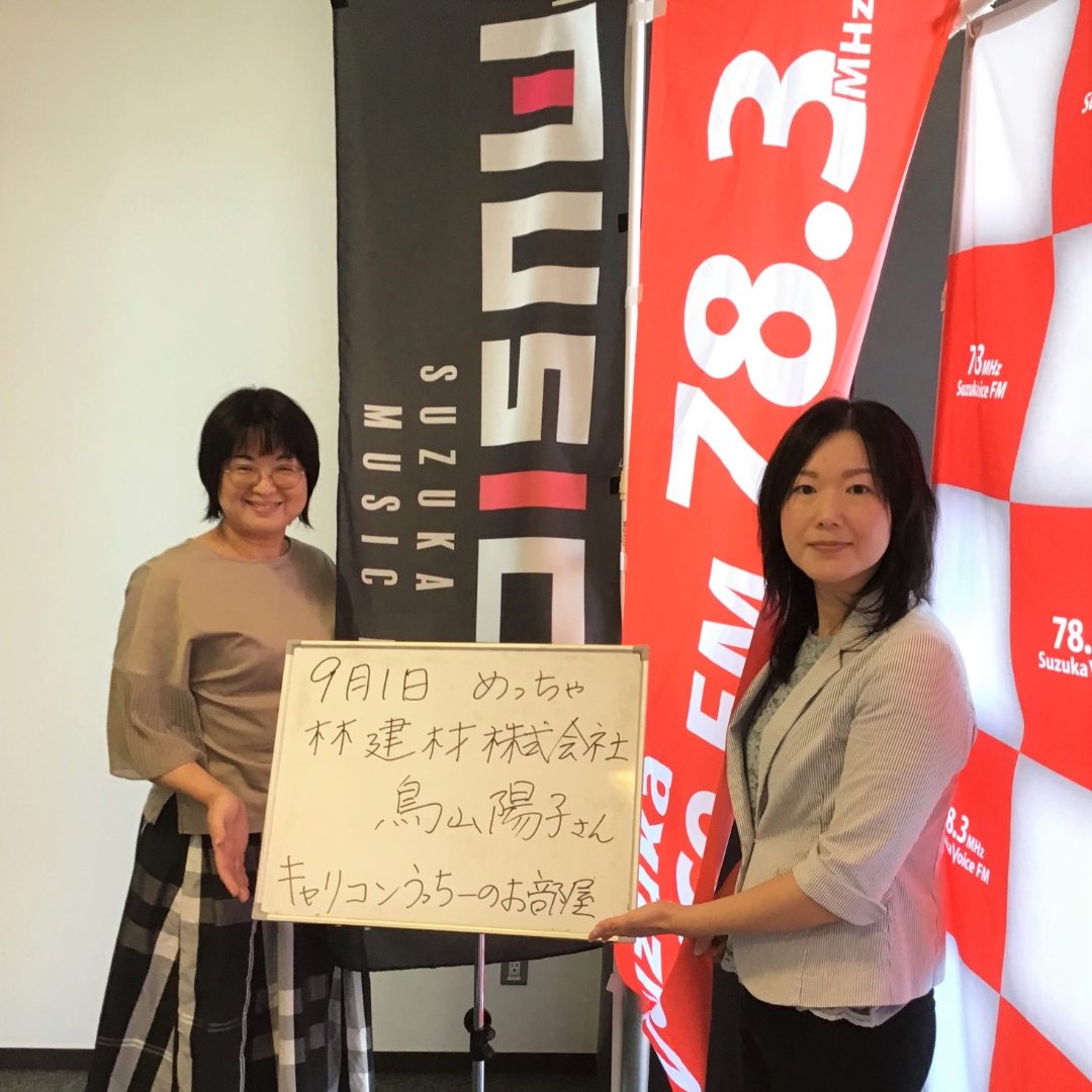 9月1日(金)、鈴鹿ヴォイスFM「めっちゃすずか!」に 〈林建材 広報 鳥山陽子〉が出演しました! パーソナリティはキャリアコンサルタントの資格を持つ内山めぐみさん。