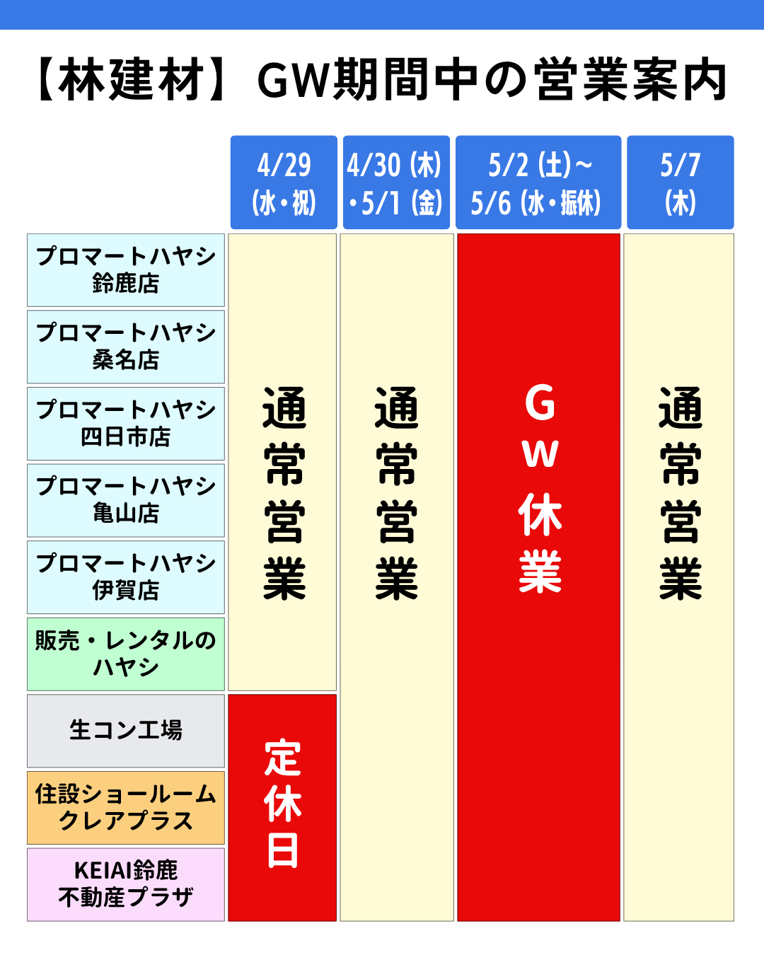 > 【広報】260413林建材GW休業のご案内